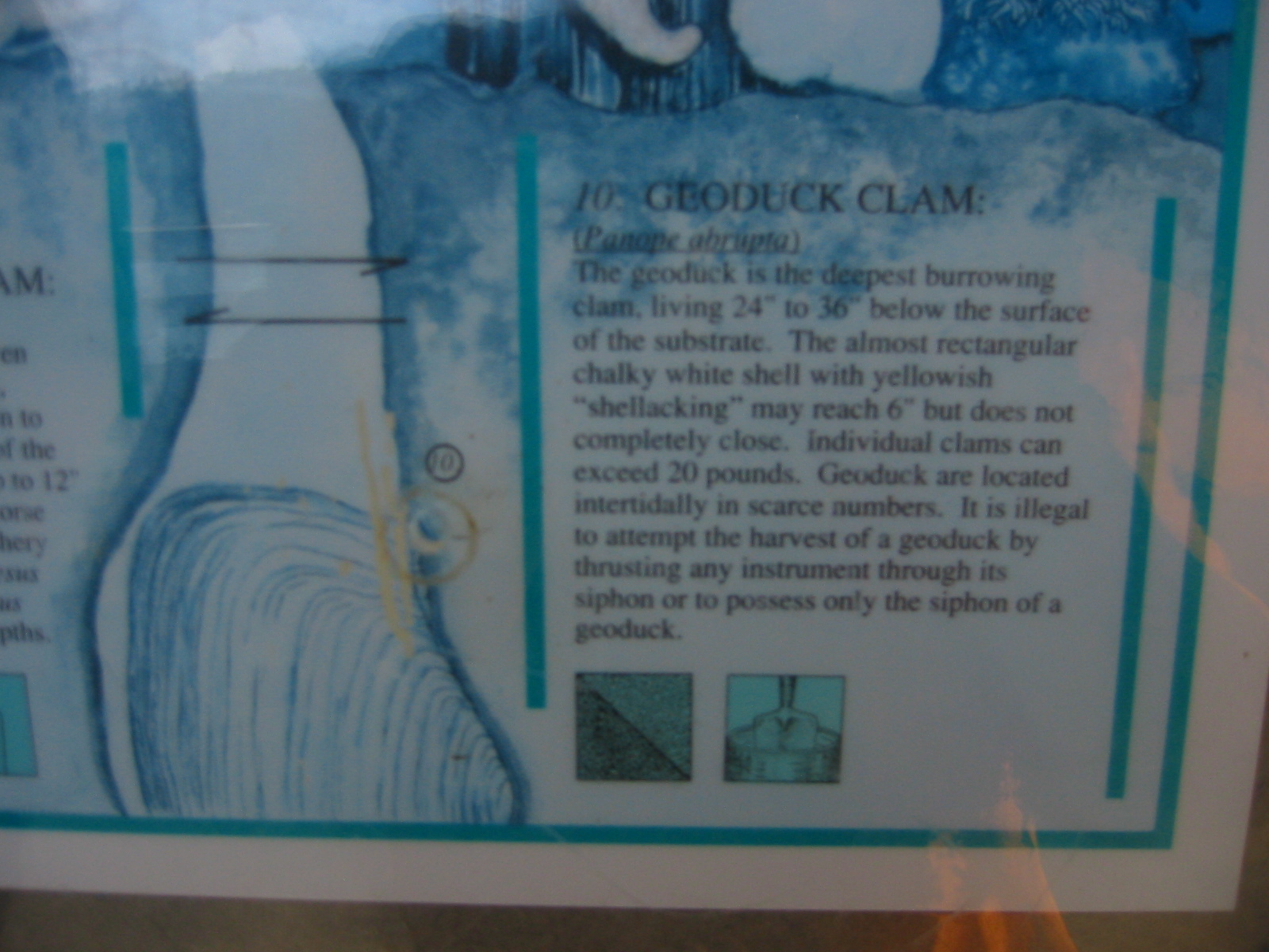 Did you know that it is illegal to possess only the siphon of a geoduck? It is. (WARNING: Huge image so you can read the text.)